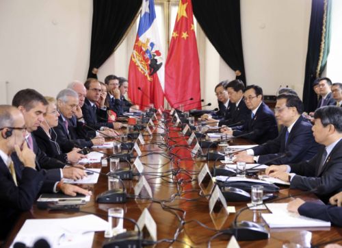 在中國國務(wù)院總理李克強與智利總統(tǒng)巴切萊特的見證下,中國商務(wù)部部長高虎城與智利外交部部長穆尼奧斯在智利首都圣地亞哥共同簽署《中華人民共和國商務(wù)部和智利共和國外交部關(guān)于中國—智利自由貿(mào)易協(xié)定升級的諒解備忘...