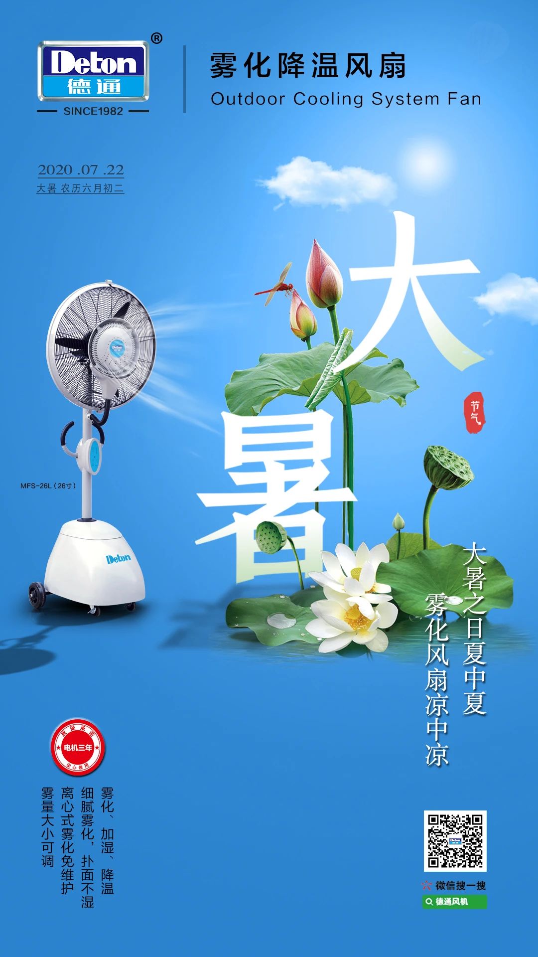 大暑之日夏中夏,霧化風(fēng)扇涼中涼