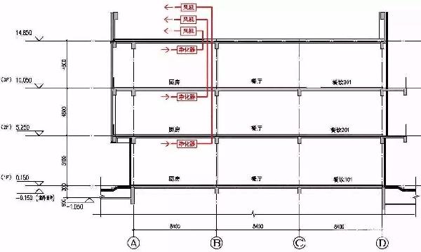 機房、風機及風管的布置廚房的排風機宜設在廚房的上部,廚房為公共建筑中的一部分時,其排風機宜設在屋頂層,這可以使風道內處于負壓狀態,避免氣味外溢。